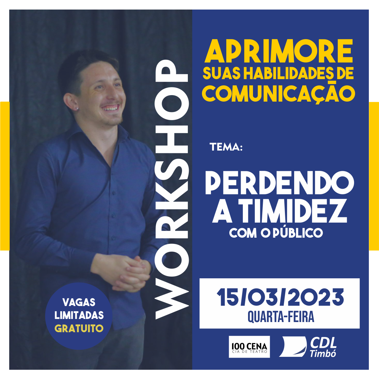 No dia 15 de março acontece com exclusividade (e de forma GRATUITA) o Workshop “Perdendo a Timidez com o Público”, que não somente vai te dar as ferramentas certas para comunicação verbal mas, também, mostrar qual é a melhor forma de se posicionar, gesticular e manifestar diante do público.
